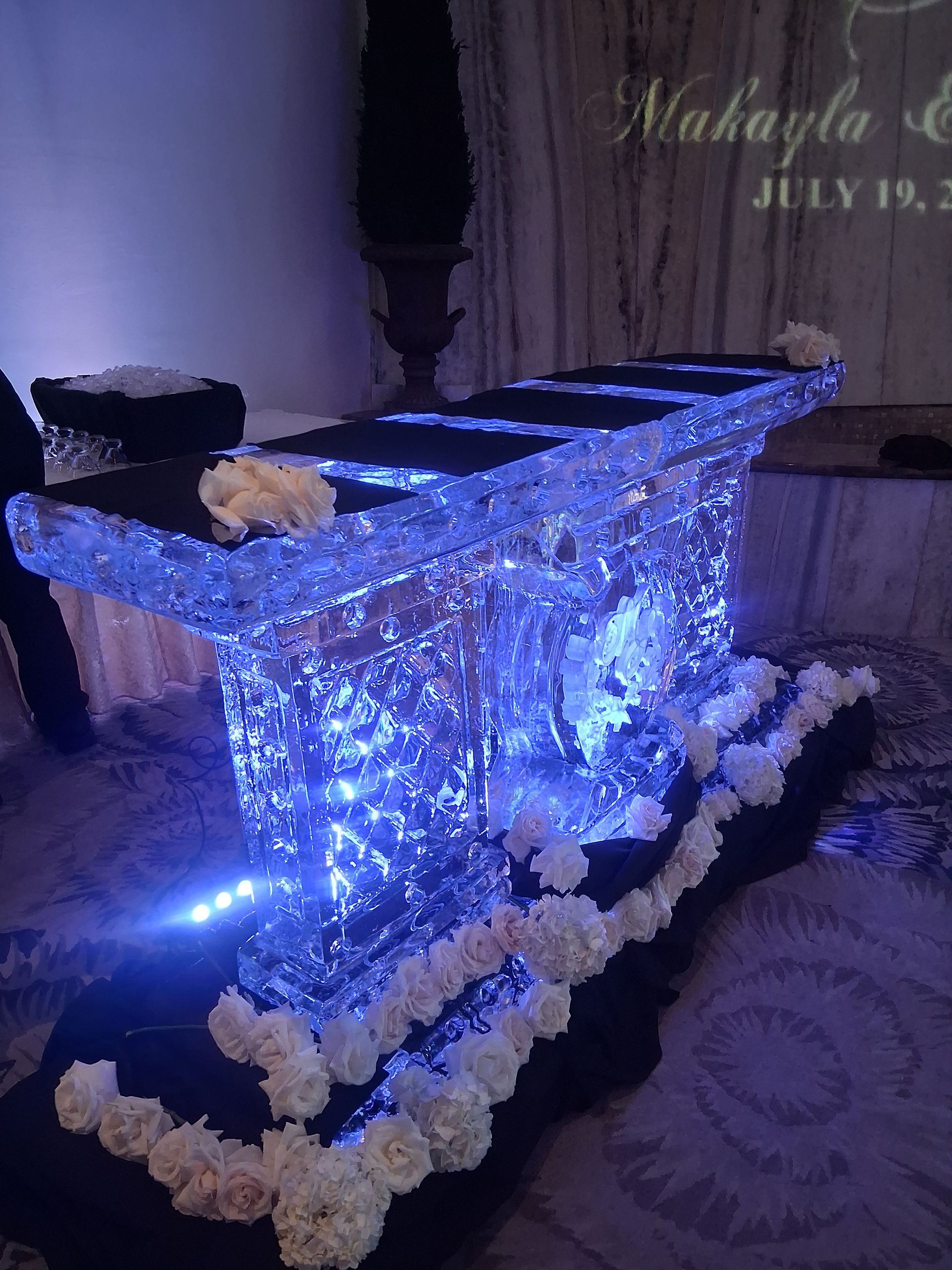 If you are having a wedding and want to add a center piece for your cocktail hour, add an ice luge to serve your signature drink. Ice luges can be designed for any themed event. They can also promote company products. If you are liquor rep, cater or company and want to add impact presentation to your signature whiskey or cocktail event this is a great choice. We also carry Premium artisanal