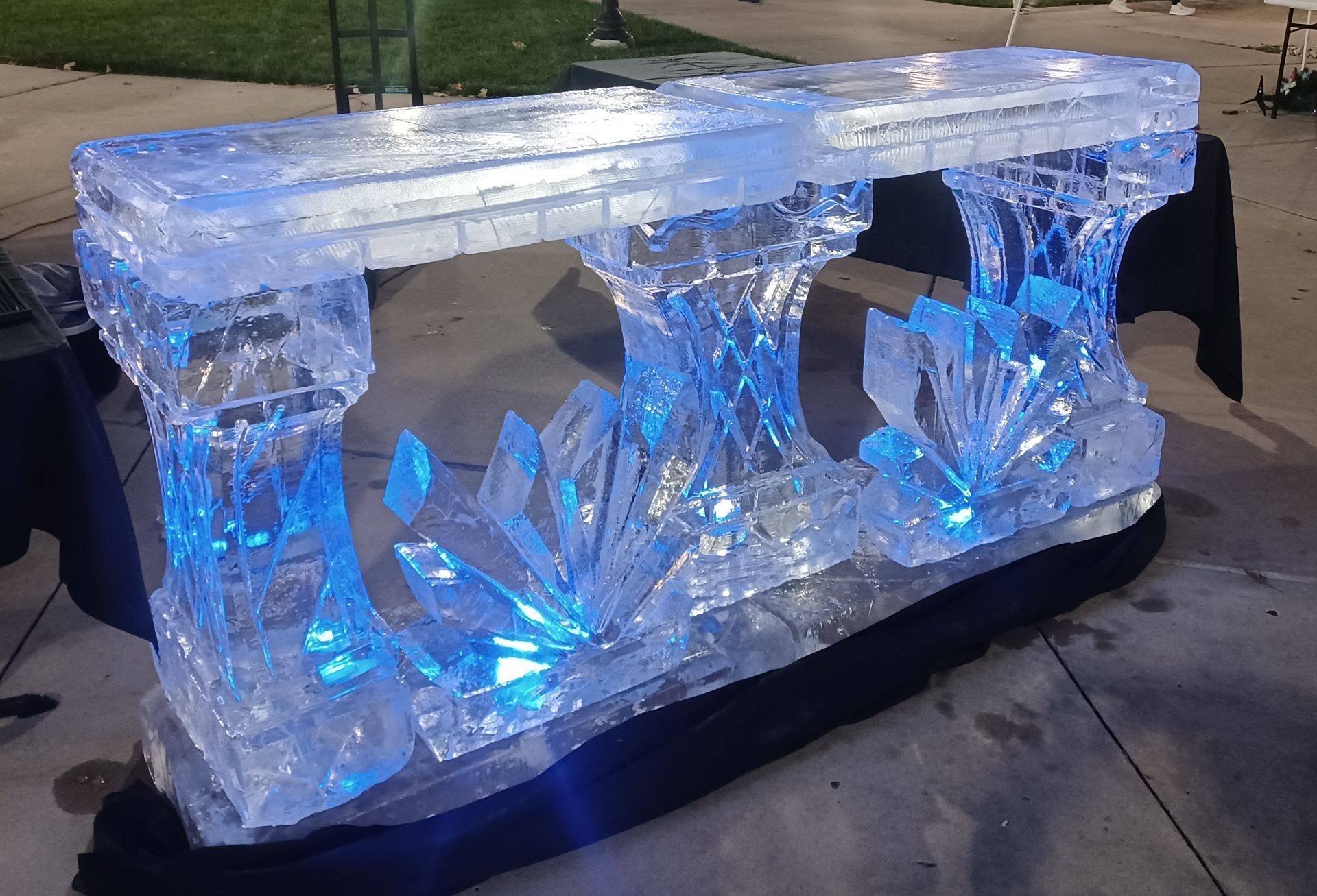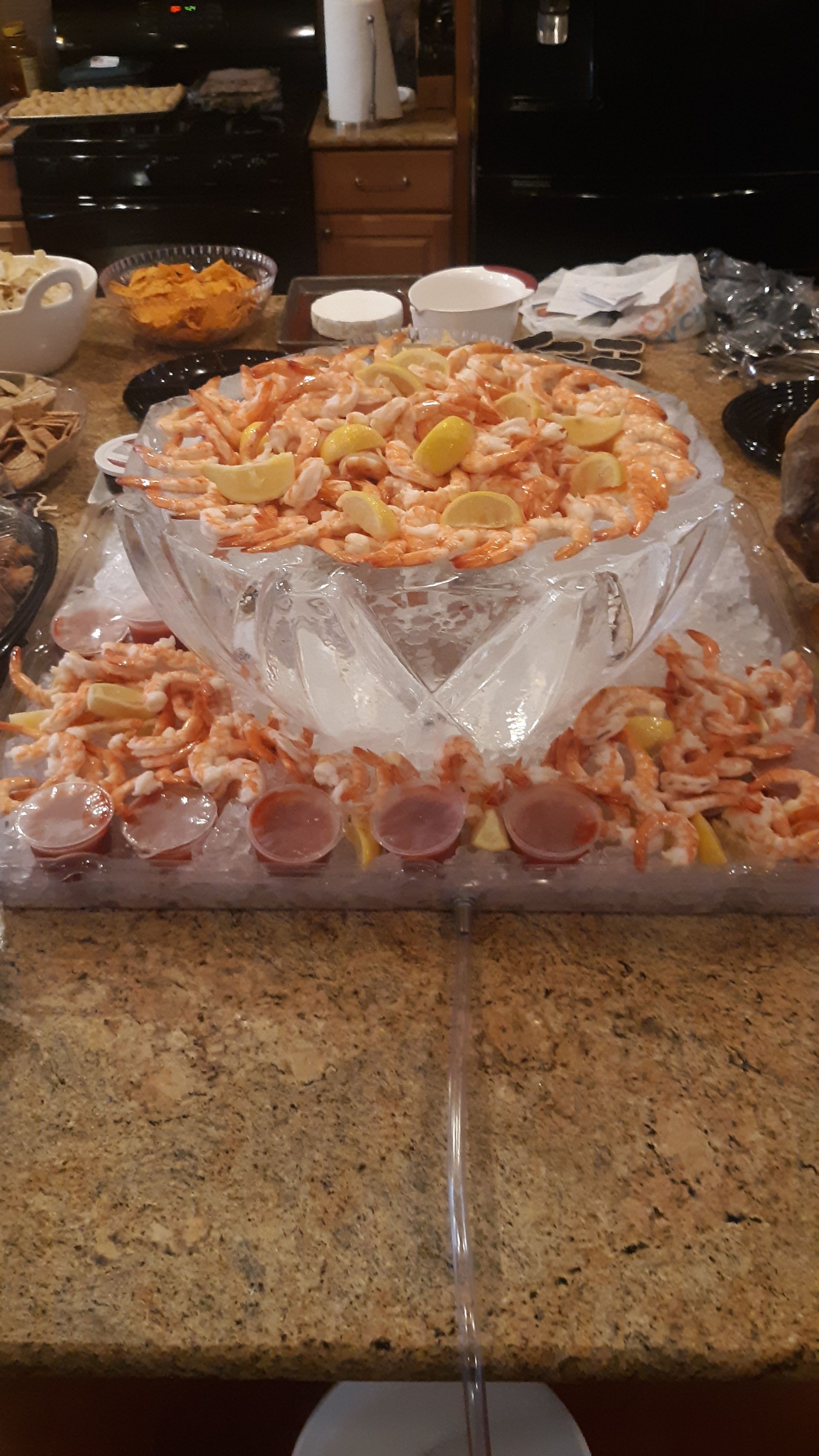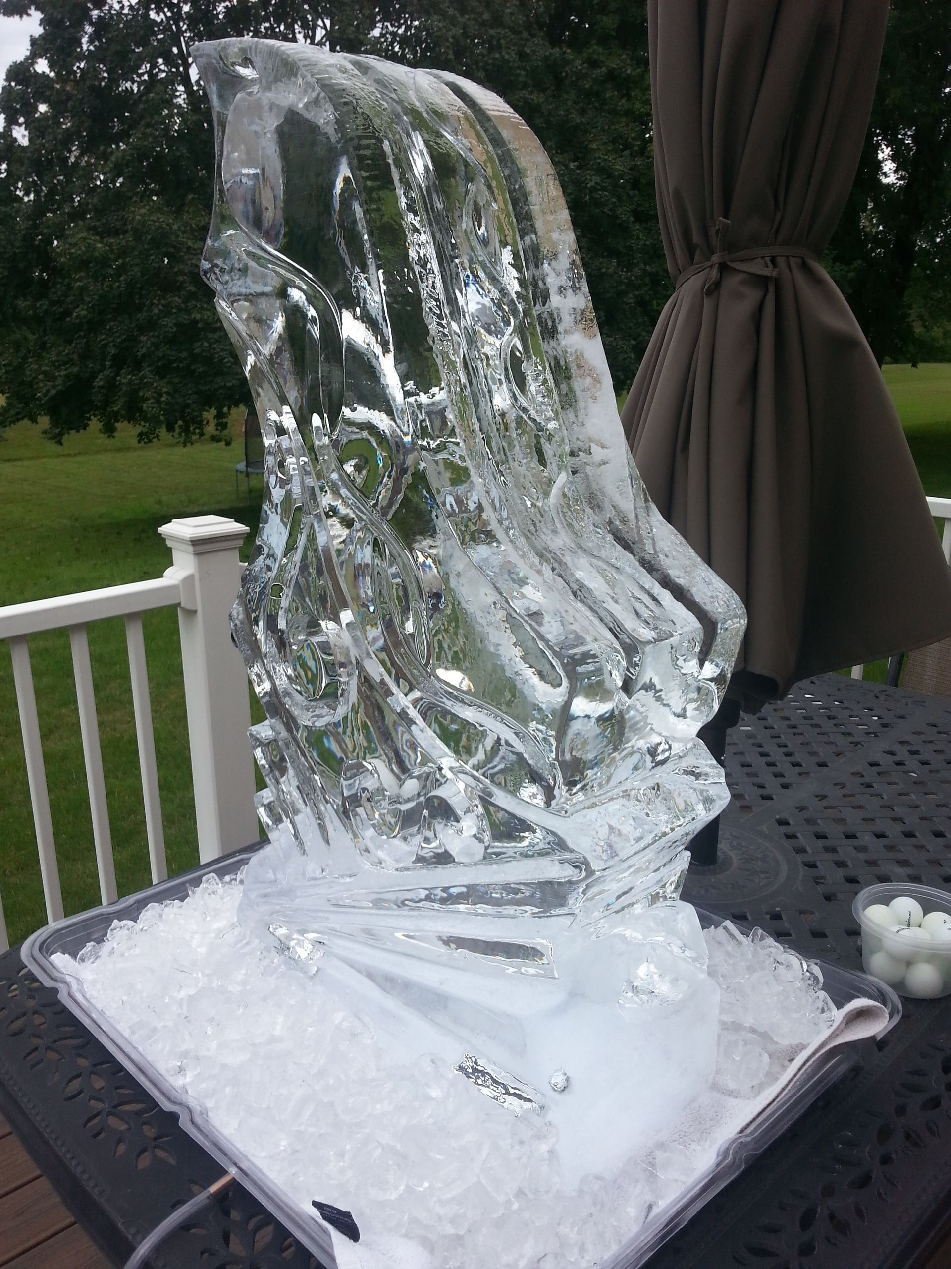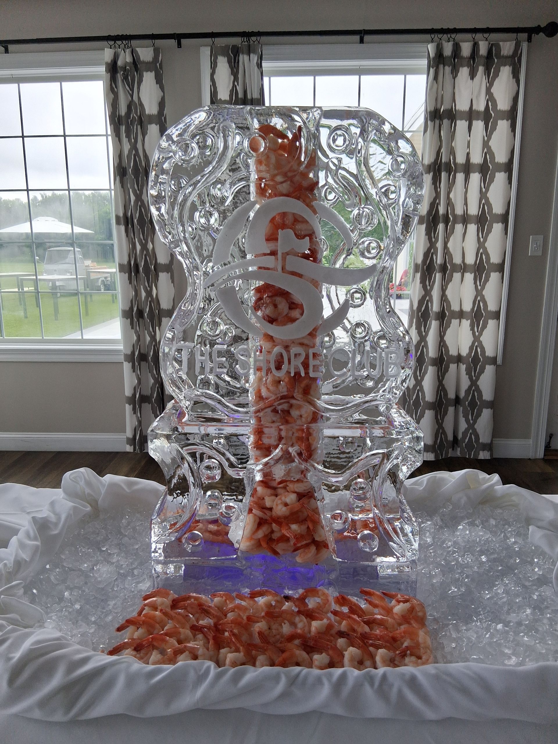 Ice bowls, Ice trays and custom themed ice sculptures. Ice sculptures are a great way to function for displaying shrimp and other types of seafood for wedding and corporate events. Or as a center piece on a table for your seafood presentation.